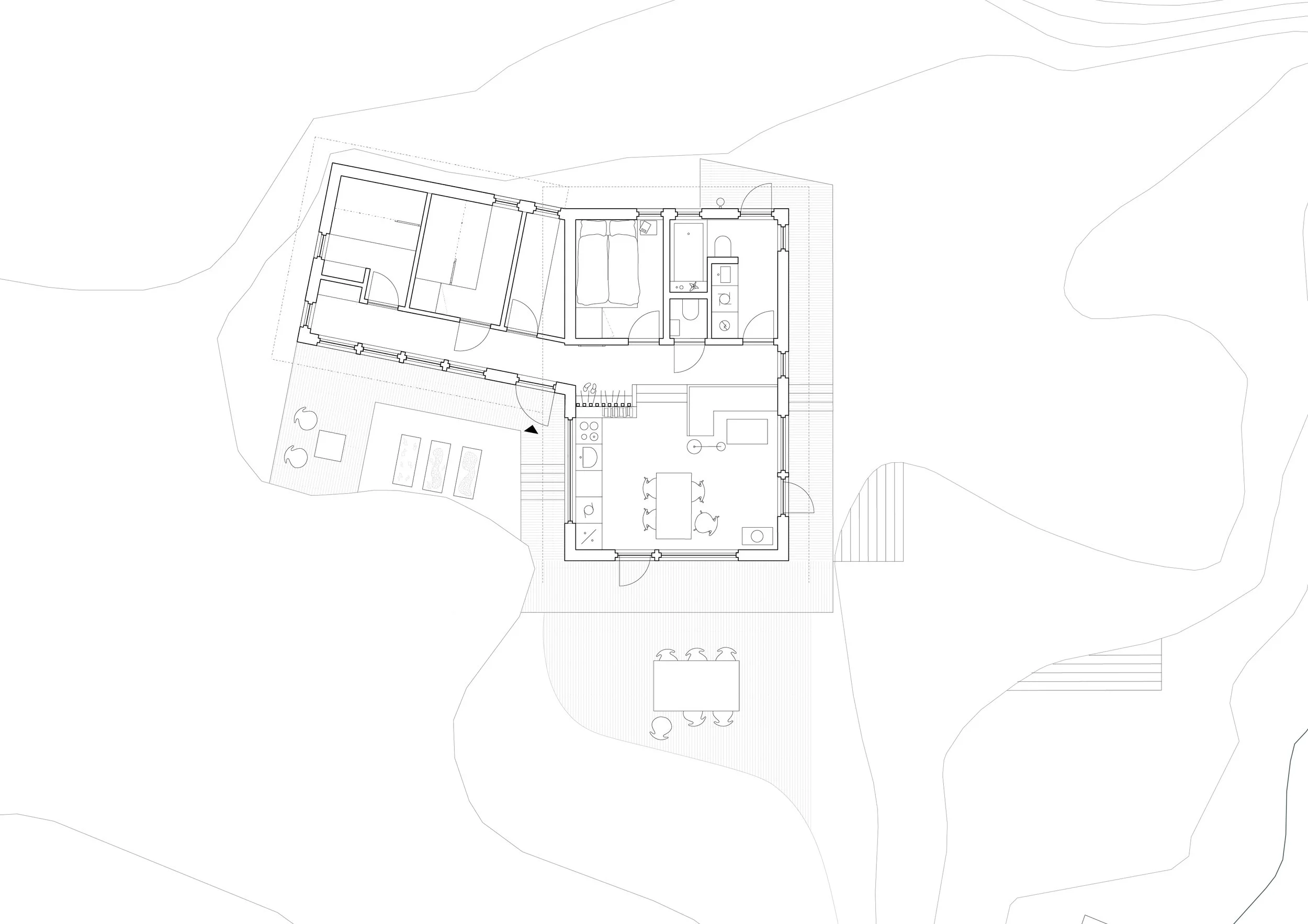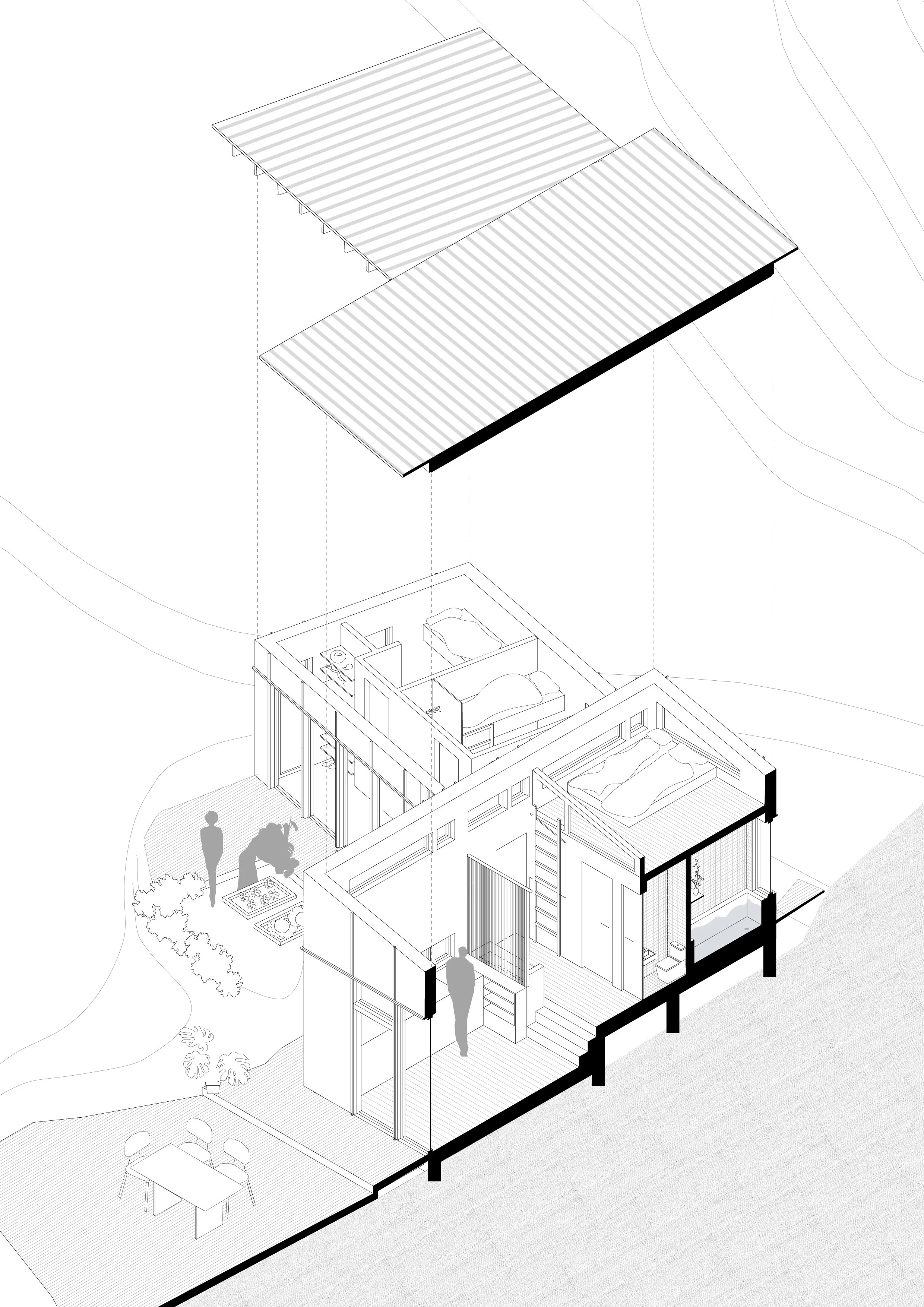 Bak bratte klipper og mellom hav og fjord ligger Solvika i Bjønnes. Hytta plasseres i beskyttelse fra nordavind, med åpen fasade ut mot havet og svaberget. Kunde skal selv bygge, så hytta må være praktisk i forhold til utforming, plan og materialer. Fotavtrykket er lite, men planen er fleksibel og effektiv, med fokus på de gode kvalitetenes fra konteksten og landskapet rundt.