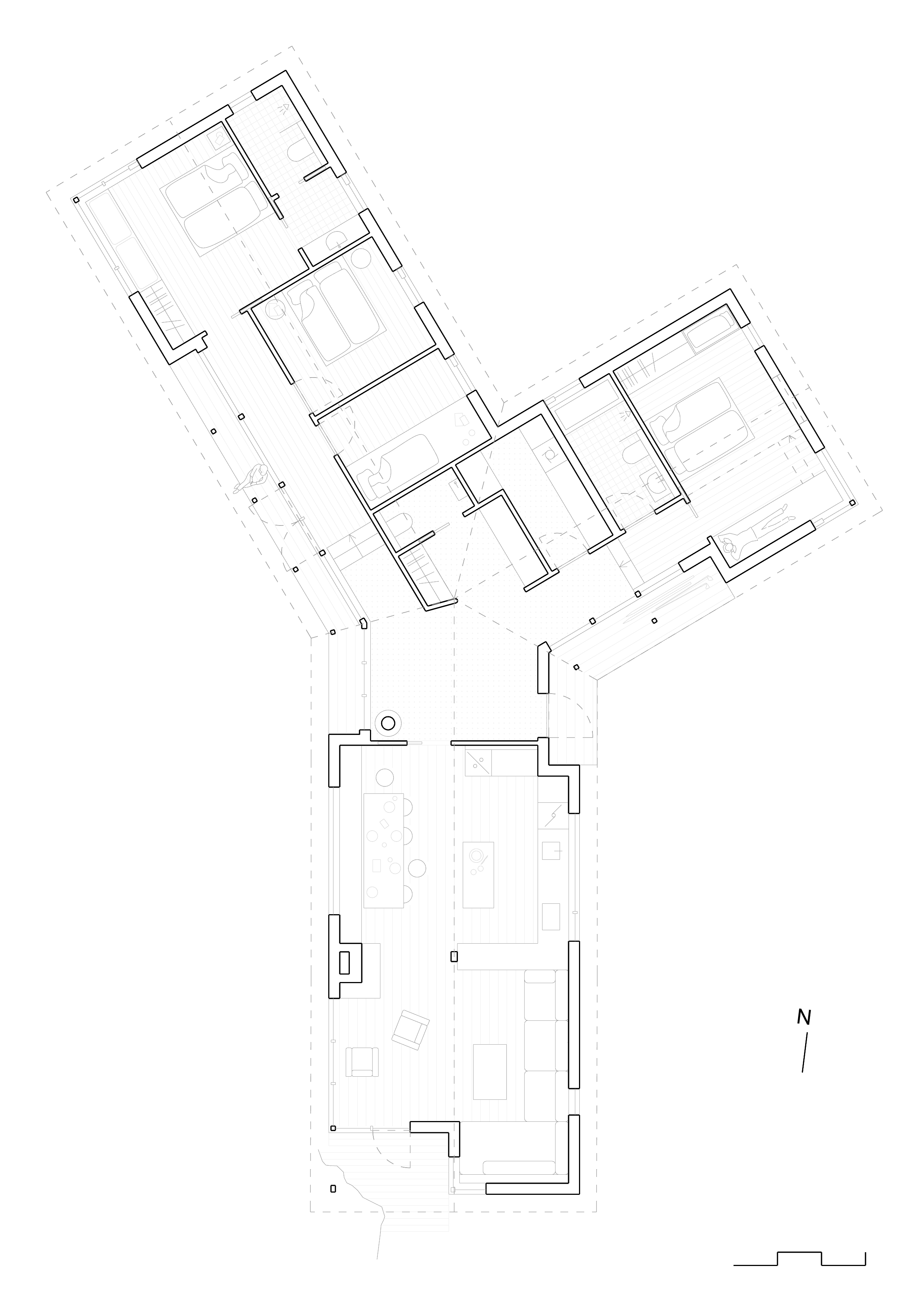 Hytta på Norefjell er skreddersydd til et ektepar som har mange barn og barnebarn. De ønsket et sted som kunne fungere for to personer, men også med hele storfamilien på besøk. Løsningen ble en hytte bestående av tre fløyer som danner en Y-form. Slik kan både store og små være samlet og trekke seg tilbake ved behov.